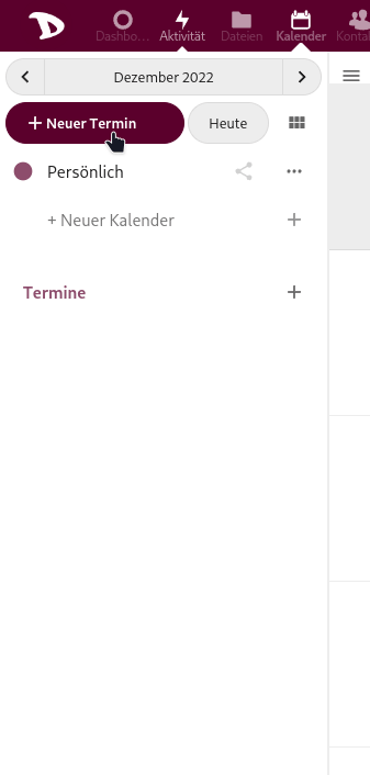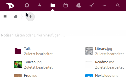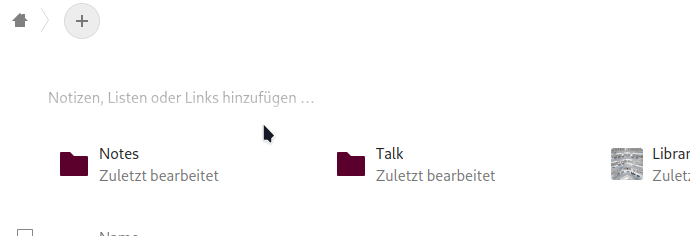 Dies ermöglicht es Dir, eine Datei hochzuladen und neue Verzeichnisse, Textdateien oder Pads zu erstellen.