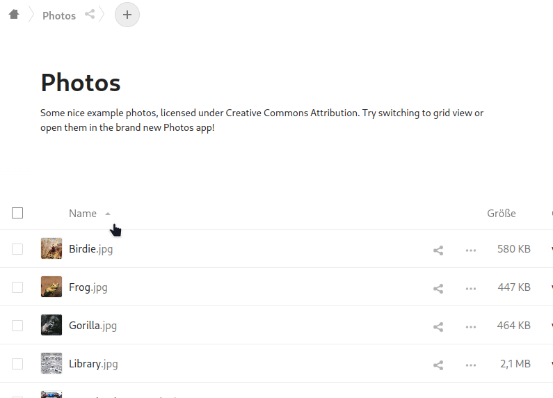 Indem Du hier klickst, kannst Du ändern, wie Deine Dateien in der Hauptansicht angezeigt werden. Du kannst zwischen Rasteransicht und Iconansicht wechseln.