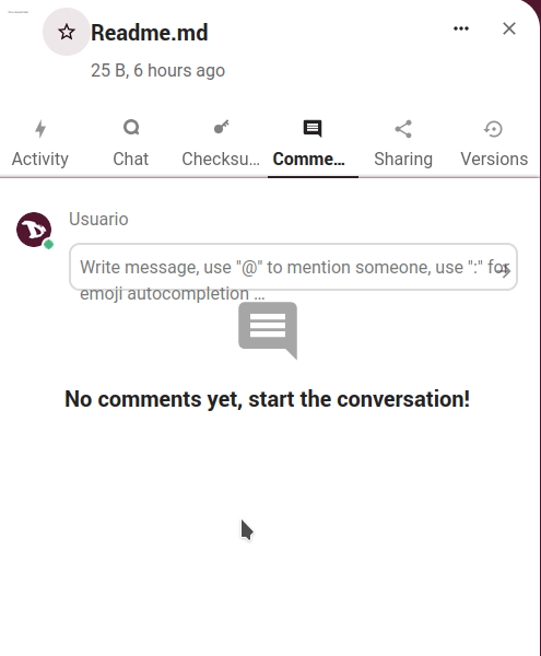 • Comments: here we can add and read comments on any file or folder. Comments are visible to everyone who has access to the file.