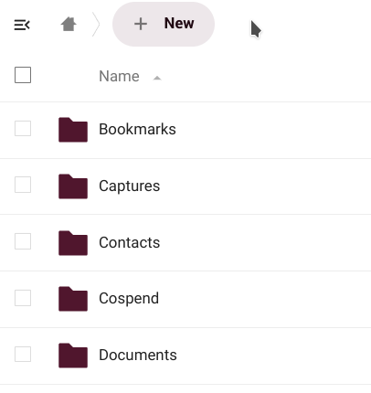 We have already seen that from the "New" button we can create folders, and create or upload files. But we can also upload them directly by dragging them from our desktop computer to the files main window.