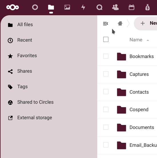 and the user menu from where we can set our online status, access the appeareance configuration and the general settings, learn about Nextcloud, read their user manual or log us out.