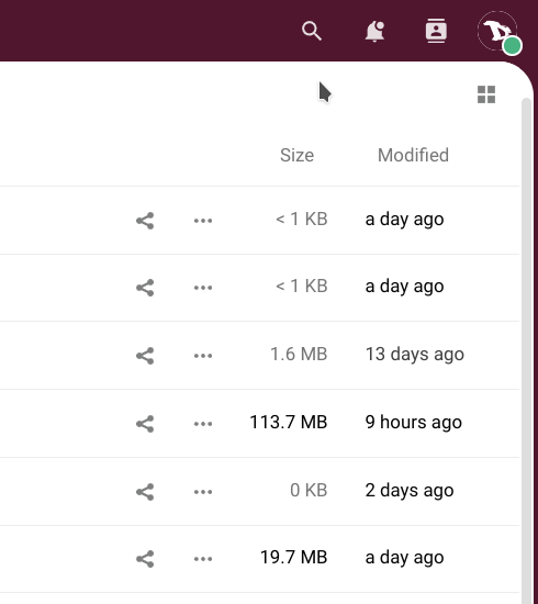 In this bar we will find all the applications available on or integrated to the Disroot cloud, such as Files, Tasks, Contacts and Notes managers, Calendar, Bookmarks, Photos, Talk, Deck and the Activity log among others. It works as shortcuts to all the cloud applications and we can choose which of them we want to see in the bar (we will learn how to do it in the Settings chapter).