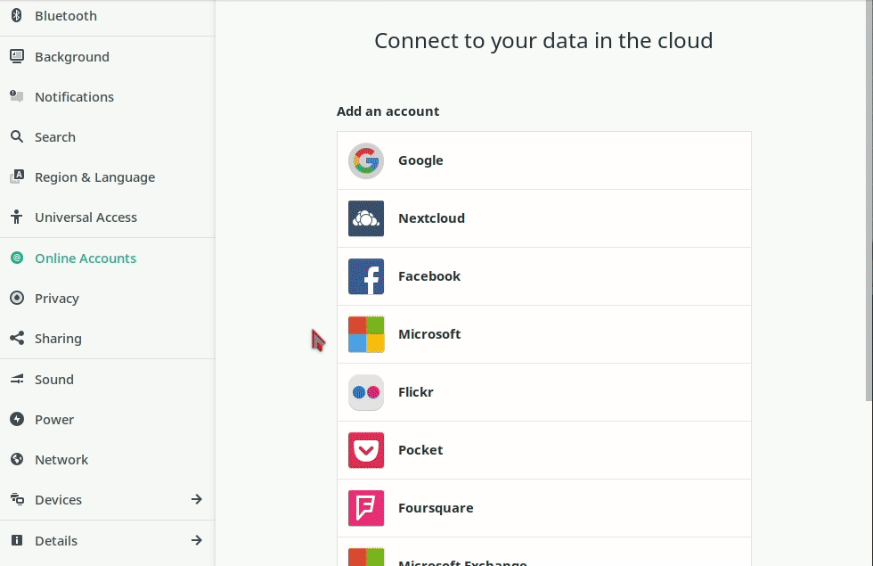 Gnome is a very popular, modern and easy to use graphical Desktop Environment for GNU/Linux. It also have an impressive integration with Disroot's services.