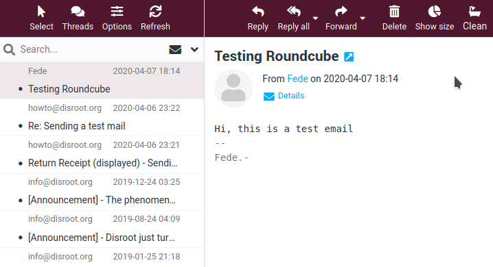 Once you have logged in, you will find the main Roundcube screen which is divided into the following sections: