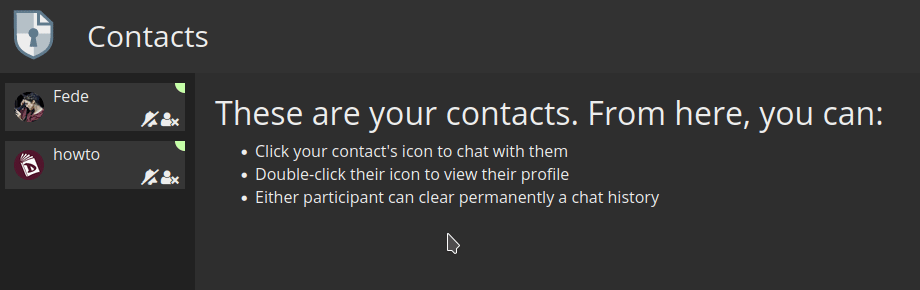 To chat with someone on your Contact list, just click on their username and the chat will open in the main window.