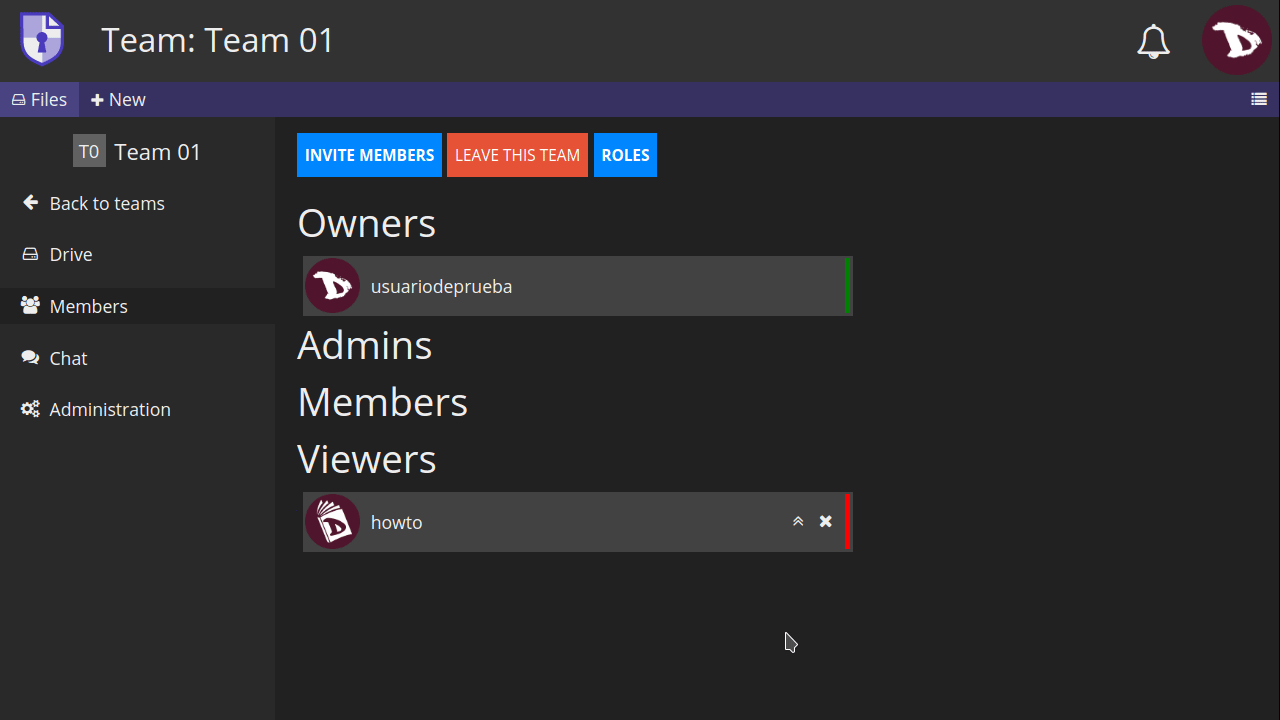 Teams are shared spaces between a group of users. A team has its own CryptDrive, chat, and a list of members with roles and permissions. Let's see how it works.